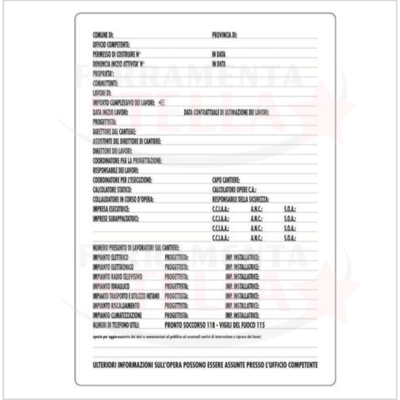 Targa per edilizia per inizio lavori misura 60 x 40