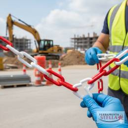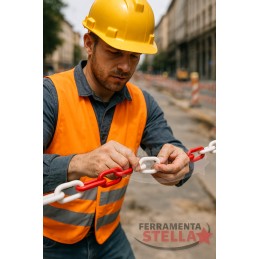 L’anello di giunzione è un piccolo ma fondamentale accessorio realizzato in polietilene ad alta densità, di colore bianco e con diametro di 6 mm. Progettato specificamente per collegare tra loro i tratti di catena segnaletica plastificata (quelle classiche a strisce rosse e bianche), permette di creare lunghezze personalizzate in pochi secondi, senza attrezzi.