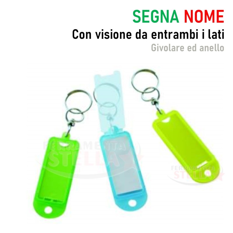 Realizzati in plastica resistente, sono dotati di targhetta scrivibile, givolare trasparente di protezione e anello in metallo, per un fissaggio sicuro al mazzo di chiavi.