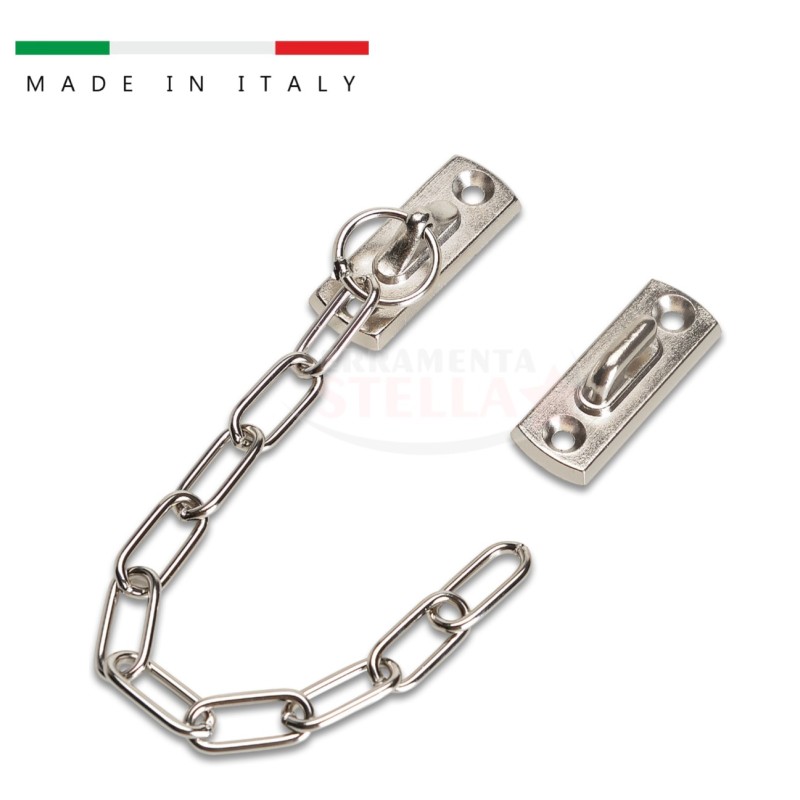 Catenella leggera fermaporte 180 mm colore cromo - piastrine in ottone e catenella in acciaio per una maggiore resistenza