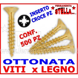 5 x 25 - tropicalizzata- pz 200 Confezione da 200 viti truciolari 5x25 mm tropicalizzate, con testa piana a croce ottonata TPS, ideali per fissaggi rapidi e resistenti su legno.