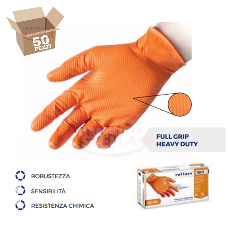 Il colore arancio aiuta il lavoratore anche in condizioni di scarsa luminosità. Heavy duty: il peso elevato del guanto lo rende particolarmente idoneo ad usi pesanti.