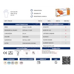 In nitrile monouso senza polvere. Con speciale grip 3D su tutto il palmo e le dita per una presa ottimale. Con un peso di Gr. 8,4 ed uno spessore di Mm. 0,15-0,20, è particolarmente adatto nei settori industriali ed automotive.