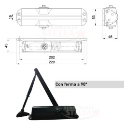 Chiudiporta idraulico con braccio e fermo di apertura