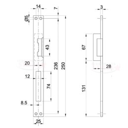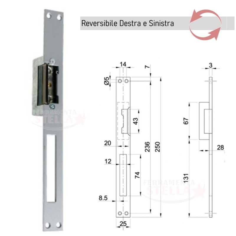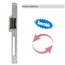 Colore piastra Argento - MATERIALE DELLA PIASTRA METALLO - Incontro elettrico simmetrico IBFM art. 9500, colore argento, frontale lungo da 250 mm in acciaio inox, con scrocco reversibile, tensione 12/24V e precarica 120N.
