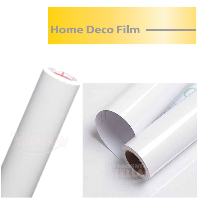 BIANCO LUCIDO - Rotolo di plastica adesiva bianco lucido in PVC da 45 cm x 15 metri, ideale per rivestire mobili, vetri e superfici lisce, resistente a raggi UV e sfregamenti.