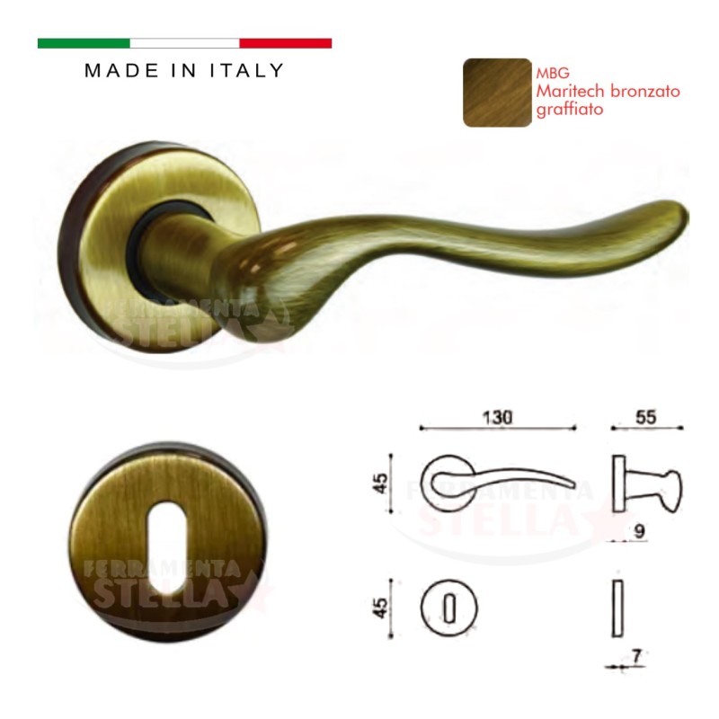 Descrizione: Maniglia su rosetta - Finitura BRONZO GRAFFIATO