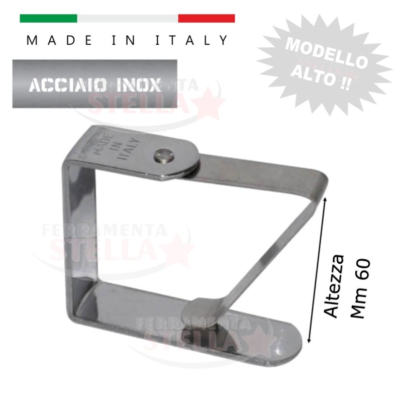 Prodotto Realizzato con acciai di alta qualità, perfetto funzionale, comodo ma soprattutto resistente anche all'esterno non si arrugginisce non lascia aloni sopra la tovaglia e non si spacca come quelli in plastica o altri materiale e resiste anche se piove non rilascia ruggine. Molla resistente e facile da sganciare per il cambio tovaglie ma perfettamente in tensione in caso di forte vento, la tovaglia non sarà mai fuori posto !!!