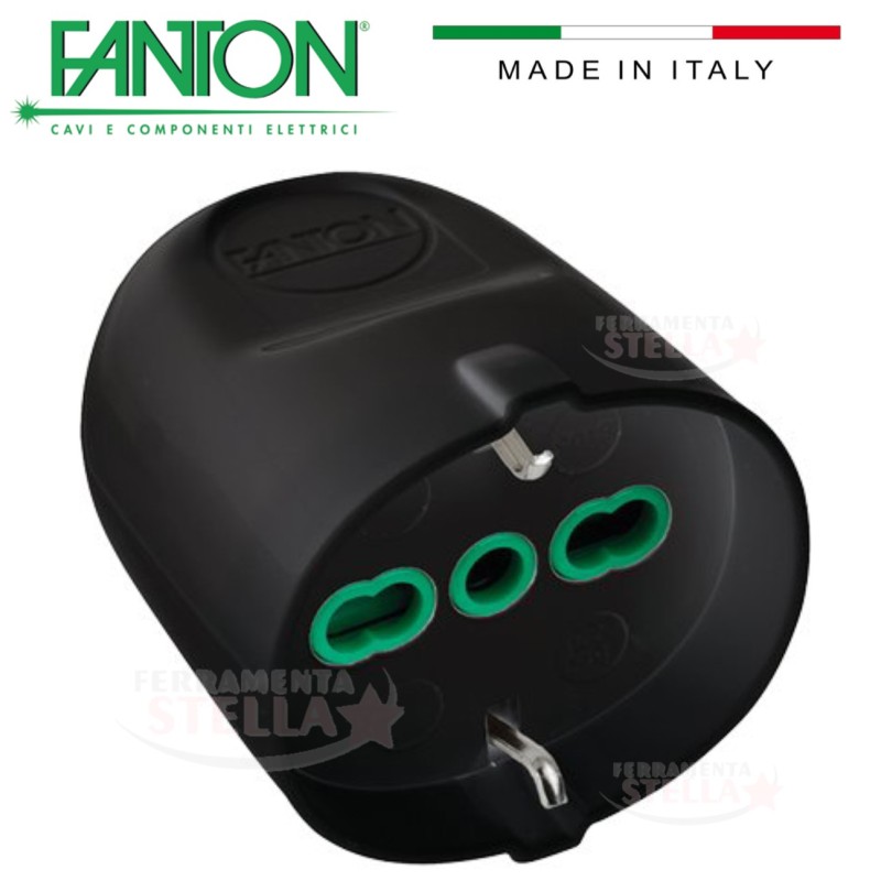 Presa con ingresso per schuko, spina tedesca, adatto per prolunghe e cavi volanti. Il modello in oggetto permette l'ingresso DI TUTTE LE SPINE è bivalente bipasso e anche delle schuko chiaramente !!