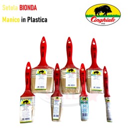 Pennellessa - con ghiera nichelata e manico in plastica. Realizzata con setola bionda miscelata a filamenti sintetici - incollata con mastice epossidico.