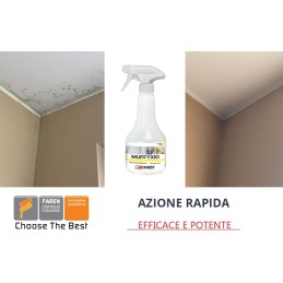 Trattamento antimuffa pronto all’uso da 500 ml per rimuovere muffe, muschi e alghe da muri e rivestimenti, con azione igienizzante - Spray antimuffa sterilizzante pittura murale muro elimina stop muffa sbiancante - Faren MUFFYXID, Rimuovi Muffa, Antimuffa, Pulitore della Muffa ad Azione Rapida, Igienizzante, Elimina rapidamente Muffe, Funghi, Muschi e Alghe, ritarda la ricomparsa, 500ml