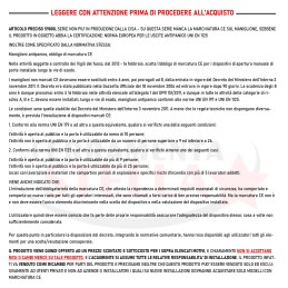 IL PRODOTTO VIENE QUINDI OFFERTO AD UN PREZZO SCONTATO E SOTTOCOSTO PER I SOPRA ELENCATI MOTIVI, E CHIARAMENTE NON SI ACCETTANO RESI O CAMBI MERCE SU TALE PRODOTTO, E L'ACQUIRENTE SI ASSUME TUTTE LE RELATIVE RESPONSABILITA' DI INSTALLAZIONE. IL PRODOTTO INFATTI VA VENDUTO COME RICAMBIO PER PARTI DEL PRODOTTO E PRECISIAMO INOLTRE CHE QUESTO PRODOTTO PUO' ESSERE VENDUTO SOLO ED ESCLUSIVAMENTE AD UTENTI PRIVATI E NON AD AZIENDE O INSTALLATORI I QUALI SU NUOVE INSTALLAZIONI DOVRANNO ACQUISTARE SOLO MODELLI CON MARCHIATURA CE.