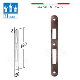 Scrocco reversibile, con richiamo quadro maniglia Mm. 8. Chiusura con catenaccio a 2 mandate. Frontale da Mm. 20x190. Altezza Mm. 125. In dotazione: 1 chiave patent.