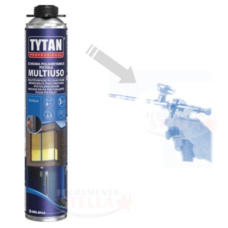 La schiuma poliuretanica universale multiuso TYTAN da 750 ml è progettata per applicazione con pistola professionale, ideale per un'ampia gamma di lavori di sigillatura, isolamento e riempimento in edilizia e ristrutturazione. Grazie alla sua formula ad alta espansione e adesione, assicura un’ottima tenuta sia su materiali porosi che non porosi. Il prodotto garantisce elevato isolamento termico e acustico, è resistente all'umidità, alla muffa e presenta un’ottima stabilità dimensionale nel tempo. Conforme agli standard qualitativi ISO 9001:2000, offre performance professionali in ogni condizione di utilizzo.