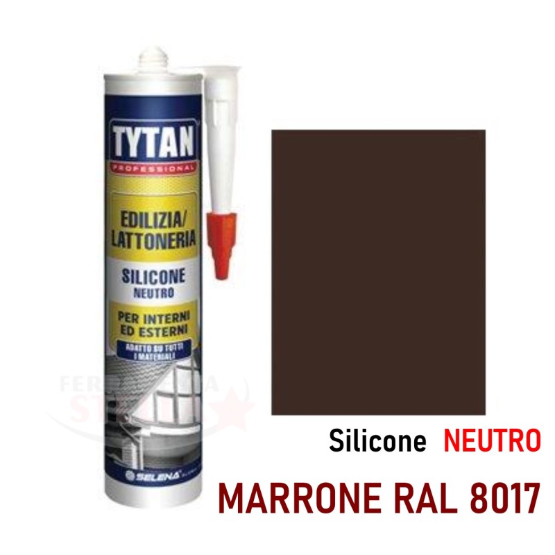 sigillante MARRONE RAL 8017 - tytan - per edilizia - TIPOLOGIA NEUTRO - TESTA DI MORO ML 300 - Silicone neutro Tytan alta qualità, colore testa di moro RAL 8017, ideale per edilizia, serramenti e lattoneria, con elevata elasticità e resistenza agli agenti atmosferici.