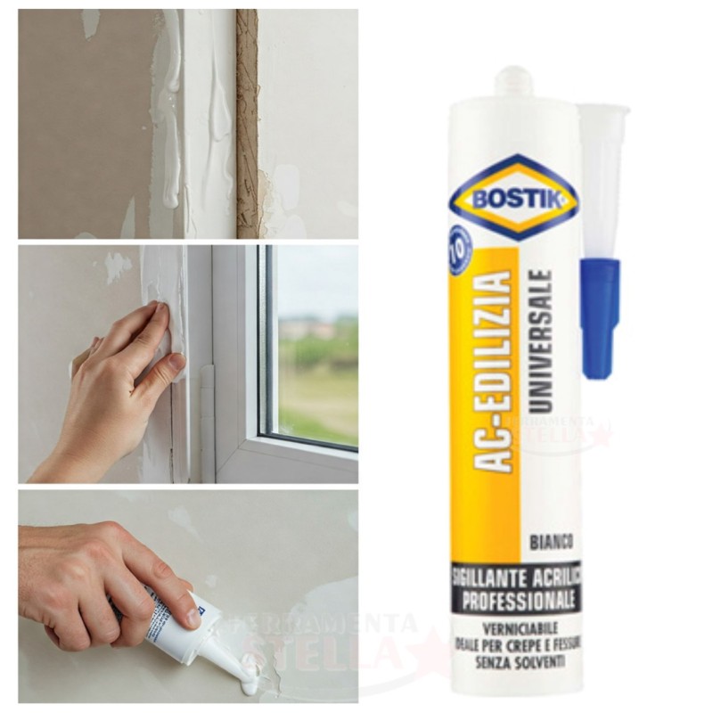 Descrizione prodotto Bostik AC-Edilizia è un sigillante acrilico senza solventi specifico per sigillature di crepe e fessure su muri ed infissi. Utilizzabile in interni.