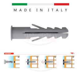 Il tassello in nylon è l’ideale per numerose applicazioni su vari tipi di materiali. Dopo aver praticato il foro nel muro è sufficiente inserire il tassello e, utilizzando l’opportuno accessorio con filetto truciolare, fissare qualsiasi oggetto con rapidità e semplicità. Il bordo (collarino), presente sul corpo del tassello impedisce che lo stesso penetri all’interno del foro causando una non corretta espansione. L’espansione del tassello avviene per compressione dello stesso all’in-terno del foro a seguito dell’inserimento della vite; è questo che permette di ottenere ottimi carichi di tenuta soprattutto su materiali compatti.