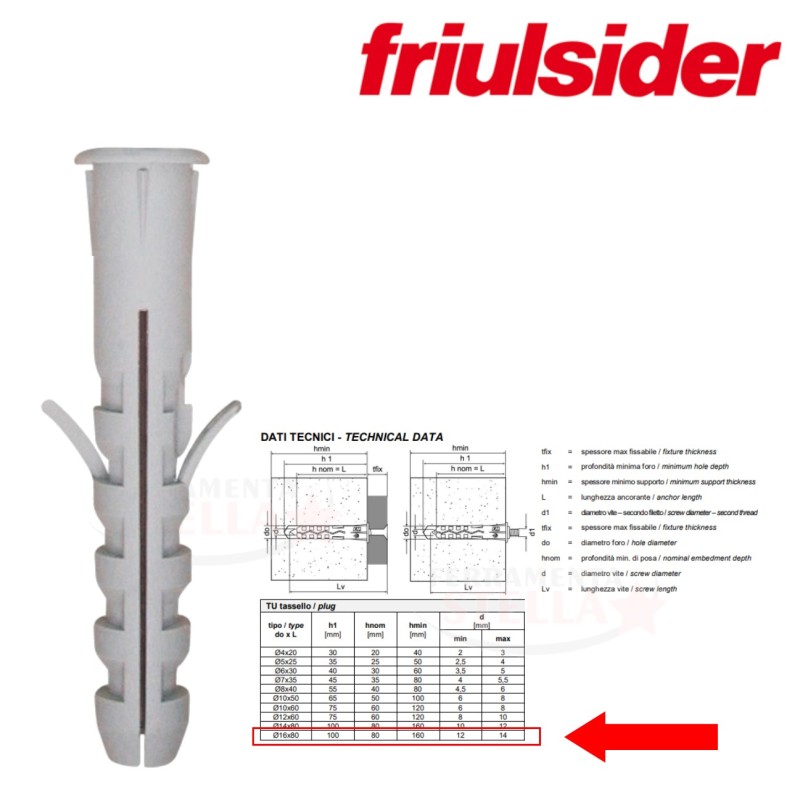 Prodotto con nylon di alta qualità. Dispone di un profilo interno che permette un inserimento ottimale della vite Il collarino evita che il tassello penetri all’interno del foro. Le alette antirotazione impedisco-no al tassello di ruotare attorno al proprio asse. Le aperture longitudinali consento-no un’espansione efficace e garantiscono elevati valori di estrazione su qualsiasi tipo di materiale. Disponibile con vite truciolare a te-sta svasata e con pitoneria a filetto truciolare.
