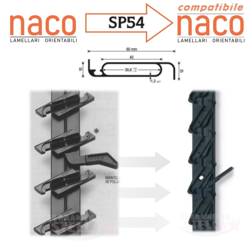 Offriamo supporto completo nell'individuazione della serie di prodotto più adatta alle tue esigenze, aiutandoti a scegliere l'articolo giusto per la sostituzione. Ti guidiamo passo dopo passo, garantendo che tu faccia la scelta migliore in base alle specifiche necessità. Contattaci inviando le foto su whatsapp della persiana da vicino (per individuare la serie giusta) e a persiana intera per poter contare tutti gli elementi di cui è composta (non inviare foto tramite email ma utilizza la messaggistica whatsapp, nella mail spesso le foto sono grandi e non riusciamo ad aprire i file e non rispondiamo alle richieste). Precisiamo che è indispensabile che il prodotto sia a marchio Naco ( lo trovi sulla maniglietta oppure sui clips che reggono le doghe) non ci impegniamo a sostituire altri marchi o modelli perché differenti in tanti particolari.