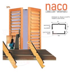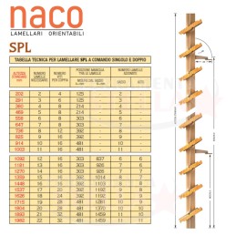 Il portalamelle NACO SPL viene realizzato in alluminio . Il portalamelle in alluminio è composto da uno scatolato pressopiegato dello spessore di 10/10, trattato in superfice come il montante. Il portalamelle viene fornito chiuso ad una estremità mentre nella parte opposta una linguetta in posizione aperta consente un agevole inserimento delle lamelle e il loro fissaggio. Sul mercato esistono vari tipi di lamelle adatte allo SPL, che vanno dal legno alla plastica all'alluminio. La lamella si innesta dentro i due portalamelle tenendo la battuta superiore rivolta verso l'esterno. Le lamelle devono cioè scivolare dentro al portalamelle senza attrito per mantenere nel tempo un'ottima manovrabilità delle persiane orientabili. Si procede quindi alla chiusura delle linguette del portalamelle con una comune pinza.