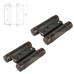 Cerniere aperture saloon per ante e porte tipo western far west in finitura bronzata da 75 mm - Vendite in coppia e quindi adatte per 1 anta è indifferente se destra o sinistra - molto apprezzate nell'ambito della ristorazione e banqueting per aree di frequente passaggio che richiedono la chiusura immediata senza l'uso delle mani.