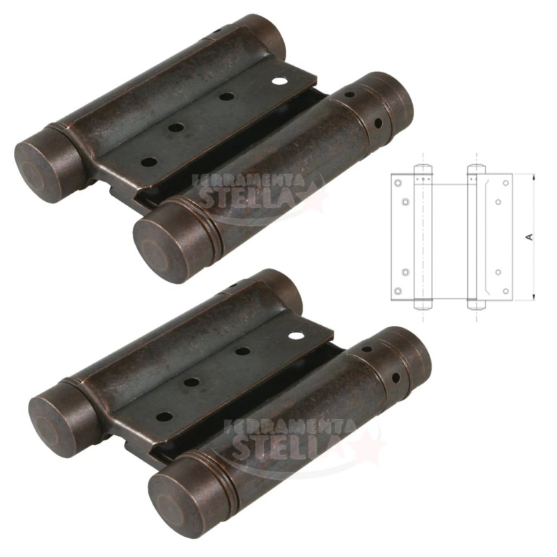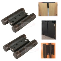Coppia di cerniere tipo bommer a molla bronzo da 125 mm per porte far west - Vendite in coppia e quindi adatte per 1 anta è indifferente se destra o sinistra - molto apprezzate nell'ambito della ristorazione e banqueting per aree di frequente passaggio che richiedono la chiusura immediata senza l'uso delle mani.