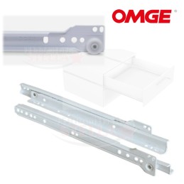 Guida sinistra con profili chiusi per uno scorrimento guidato; aperti per la guida destra per assorbire la tolleranza sulla larghezza del cassetto.