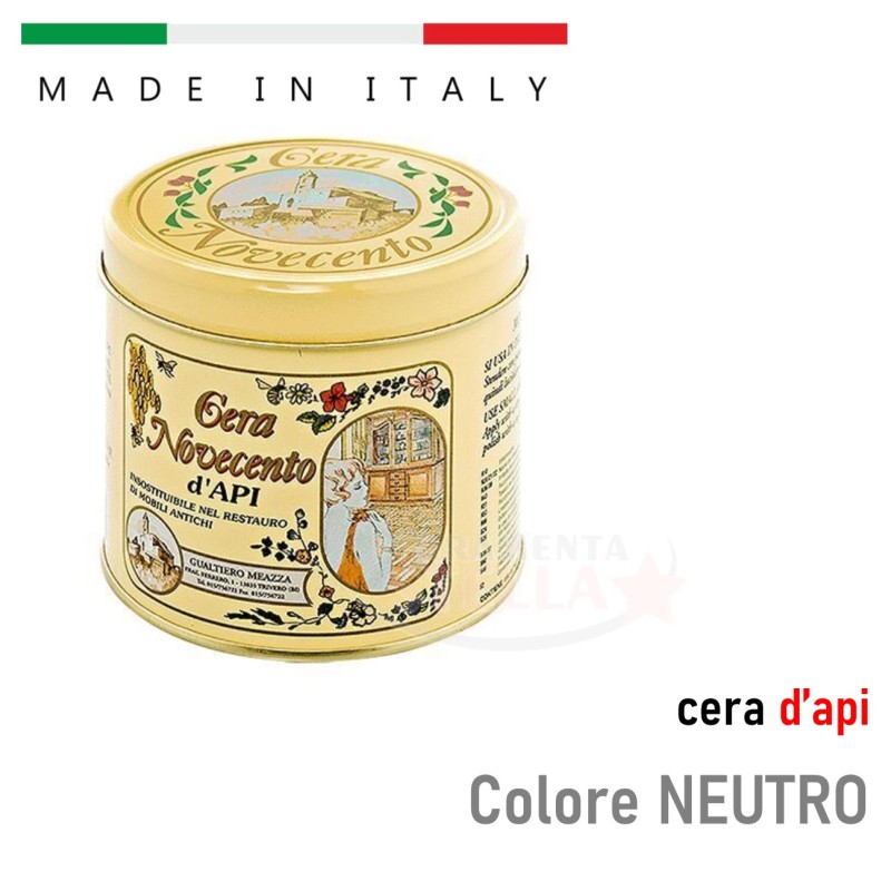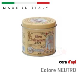 Cera d'Api Novecento è una cera in pasta tradizionale composta principalmente da cera d'api vergine. Particolarmente adatta per mobili e pavimenti in legno, antichi e non, è indispensabile nel restauro del mobile antico. La cera d' api nutre in profondità il legno e diffonde nell'ambiente il caratteristico profumo di pulito di altri tempi.